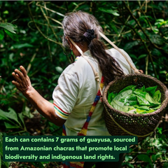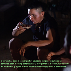 Unlike monocrops such as coffee or cacao, guayusa is grown in indigenous farming systems known as Amazonian chakras, where many plants grow together in harmony with the rainforest, under the shade of other trees & without the use of pesticides. This protects biodiversity and soil health and offers a truly sustainable alternative to the monocrop agriculture driving deforestation in the Amazon today.
